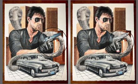 In any case, Lorin Michki, aka @drawnfireart on Instagram, recently completed two updated versions of the titular hero in movie poster style. One shows Lt. Cobretti with the custom Colt Gold Cup National Match pistol he carried in the film. The other version features “Cobra” carrying a Chambers Custom “Working Man’s Gun.” (WMG). Happily for you car folks, it also features Cobretti’s custom 1950 Mercury.