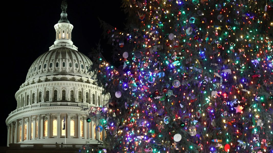 The U.S. Capitol Christmas Tree is up outside the building where GOP leaders are furiously scrambling to find a way to avoid a government shutdown at the end of the day on Friday.