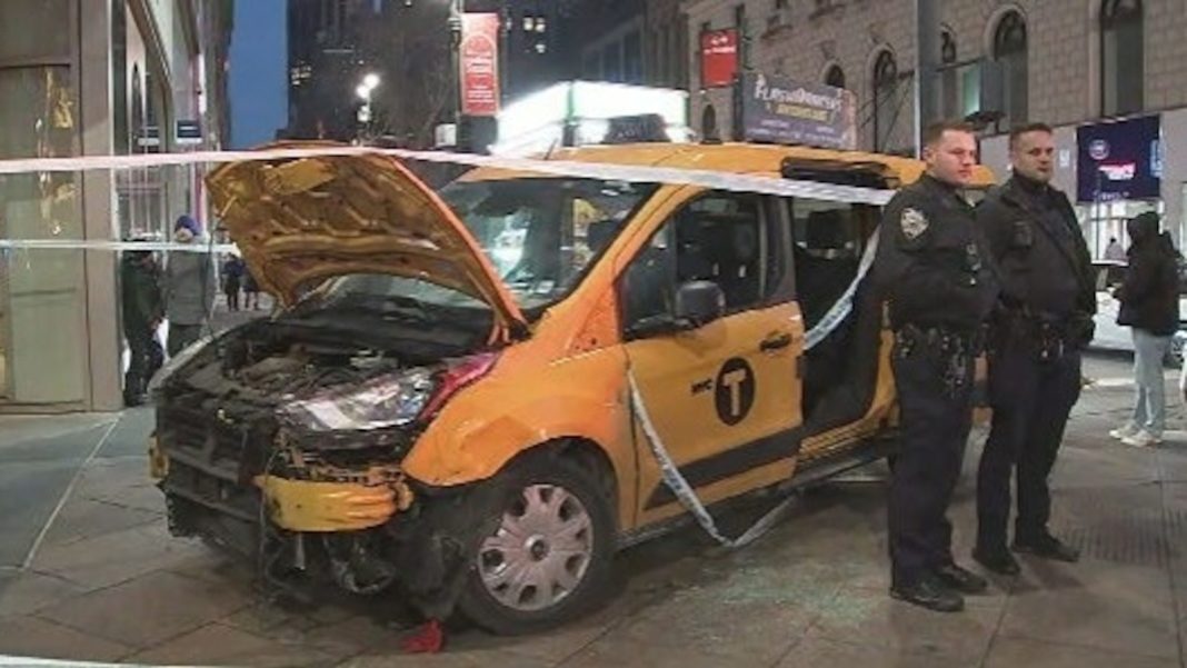 Taxi hits pedestrians in Herald Square.