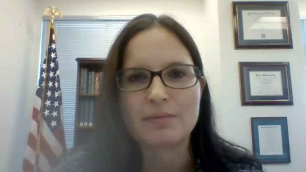 In this image from video provided by the U.S. Senate, Aileen M. Cannon speaks remotely during a Senate Judiciary Committee oversight nomination hearing in 2020 in Washington.
