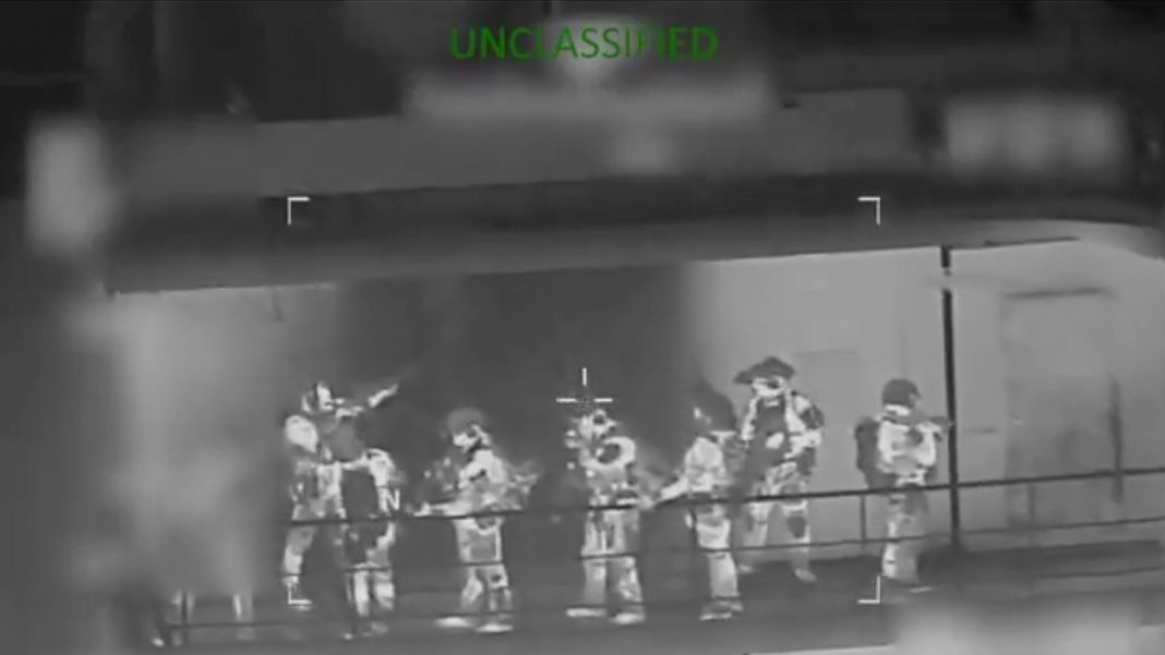 Video released by Homeland Security Secretary Kristi Noem shows a U.S. Coast Guard tactical team seizing control of the oil tanker Marinera, formally known as the M/V Bella 1 in the North Atlantic, Jan. 7, 2026.