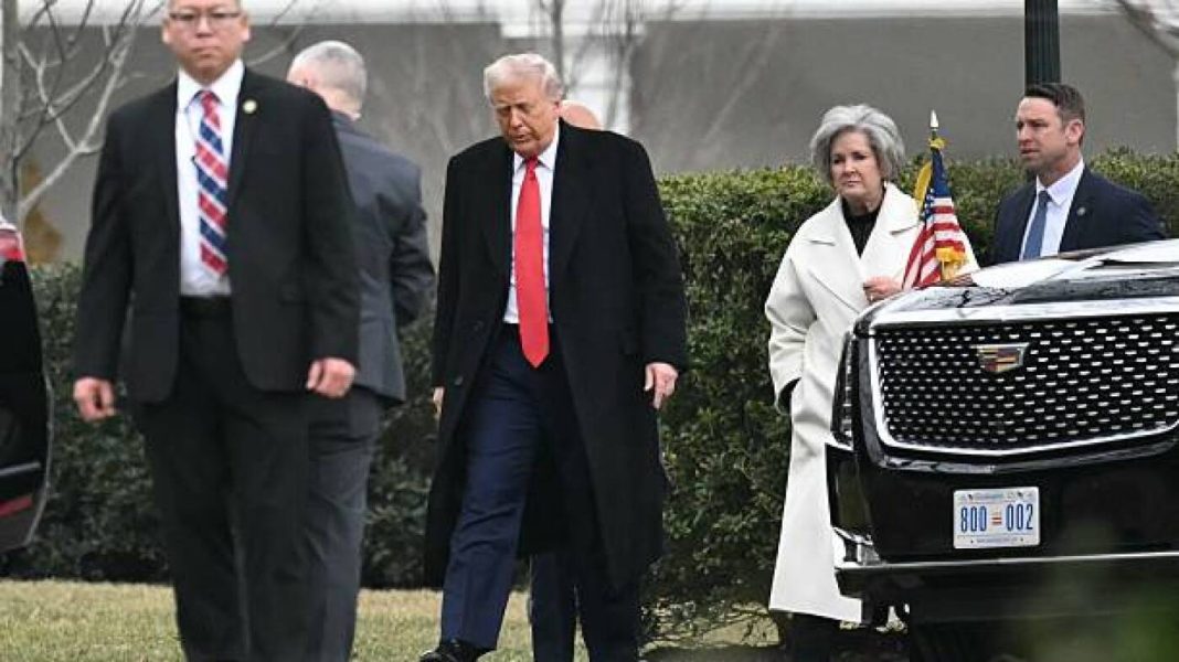President Trump, accompanied by chief of staff Susie Wiles, arrives at the White House.