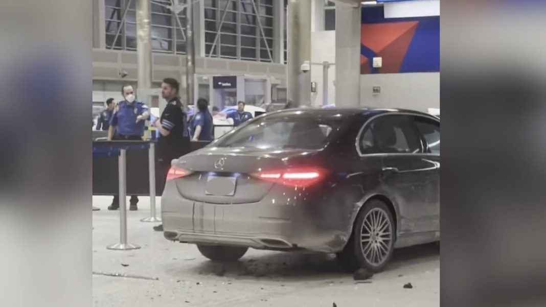 The car hit a ticket counter inside the McNamara Terminal, the airport authority said, and six people were treated at the scene. Authorities did not specify the nature of their injuries.
