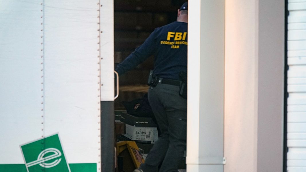 A member of the Federal Bureau of Investigation (FBI) Evidence Response Team works outside the Fulton County Election Hub and Operation Center after the FBI executed a search warrant there in relation to the 2020 election in Union City, Georgia, U.S. January 28, 2026.