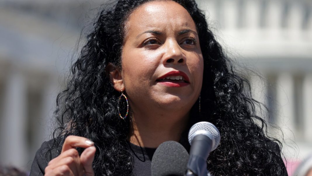 Analilia Mejia, Co-Executive Director of Center for Popular Democracy, speaks during a news conference outside the U.S. Capitol calling for immediate resignation of U.S. Supreme Court Associate Justice Clarence Thomas on April 19, 2023 in Washington, DC.