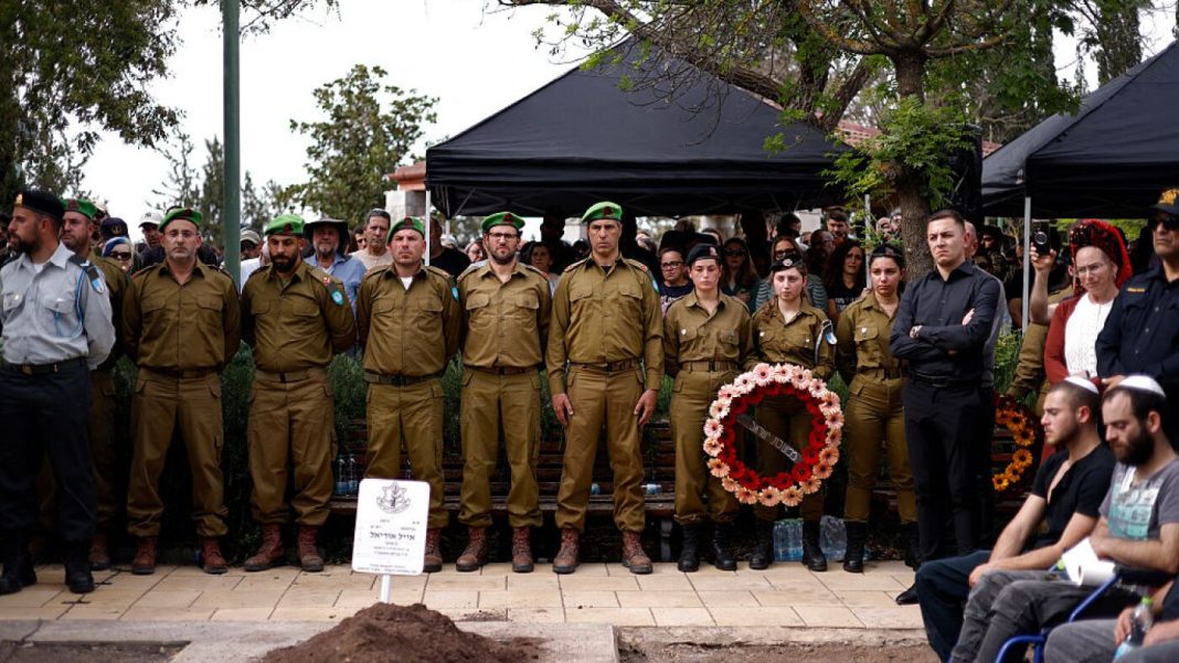 Comrades, relatives and friends of Sgt. Maj. (Res.) Ayal Uriel Bianco, who was reportedly killed in combat in southern Lebanon, attend his funeral in Katzrin in the Israeli-annexed Golan Heights on Tuesday.